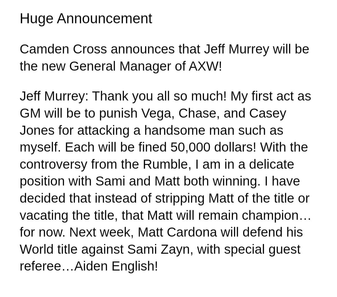 AXW Showdown 2/1/23 Posted byDaniel CrawfordFebruary 11, 2023Posted inHLW Shows Share this: Click to share on X (Opens in new window) X Click to share on Facebook (Opens in new window) Facebook Like Loading... Related Published by Daniel Crawford I'm a single father of two, one of four children of a single mother (who passed at the age of 49), an activist, an aspiring public servant, an author, a podcast host, and an average member of the working class. View more posts