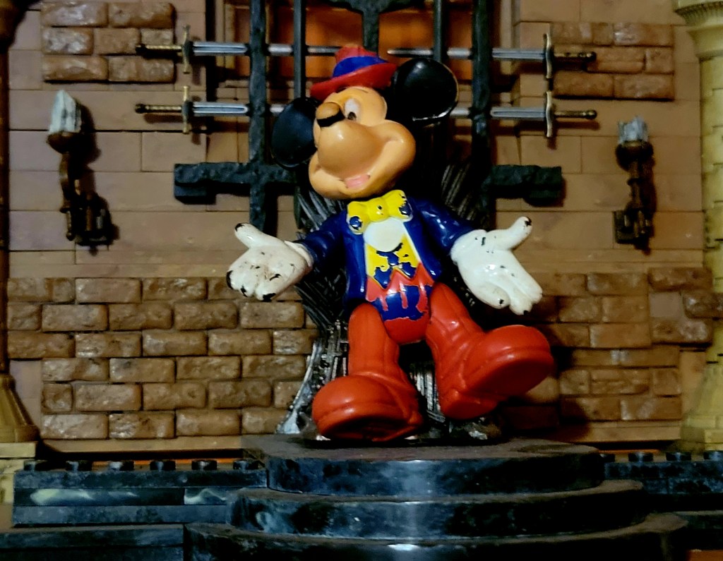 “Metalingus” hits as Benny Mouse and Danhausen step through the tunnel to boos so loud it shakes the floor inside the arena. Benny Mouse is being carried on an exact replica throne that his older brother Mickey once sat atop. The guards carrying the throne drop it at the top of the stage, where Benny Mouse nods, and Danhausen begins to make his way to the ring.