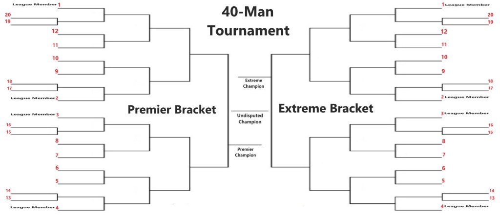 - Seeding: (Premier League = 1-20?) (Extreme League = 1-20?)